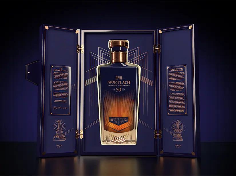 Since 1896, Mortlach Single Malt Scotch Whisky has been precisely 2.81 times distilled, roused by a mysterious method we call ‘The Way.’ During this distinctive process, Mortlach’s copper stills reverberate with a whimsical hum, unveiling fragments of its revered legacy with every harmonious vibration.