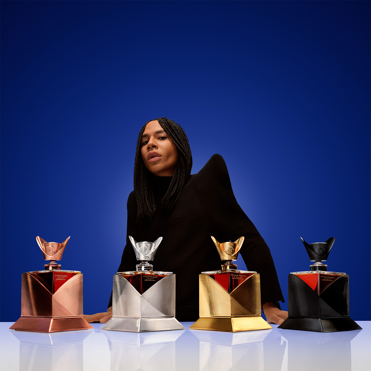 Over the course of nearly a year, Dr. Walker has collaborated closely with Rousteing to explore his unique experiences, tastes and emotional expressions, resulting in blends that resonate deeply. Together, these two master artisans have formed a partnership that redefines the limits of whisky, both technically and artistically.