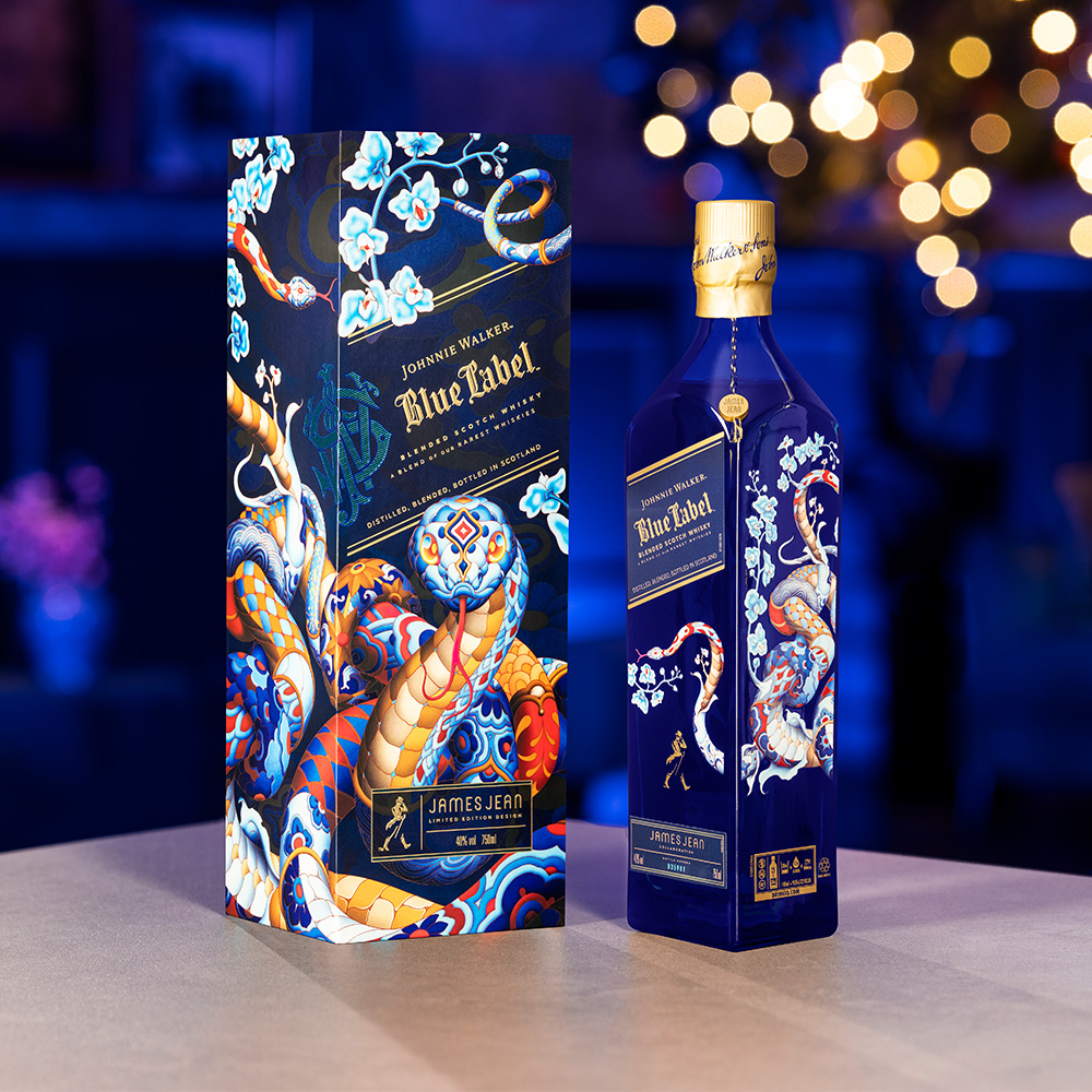 Introducing Johnnie Walker Blue Label Year of the Snake Limited Edition. The Snake, revered as the most enigmatic Zodiac animal, symbolises renewal and transformation. The vivid design for the Year of the Snake features an innovative and dynamic interpretation of 2025’s Zodiac animal and marks an extension of the collaboration between Johnnie Walker and James Jean, following last year’s hugely popular design for the Year of the Dragon.Jean masterfully fuses traditional motifs with modern aesthetics, capturing the snake’s transformative essence and echoing the layered flavours of this exceptional Scotch Whisky.