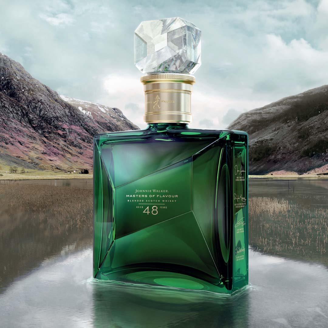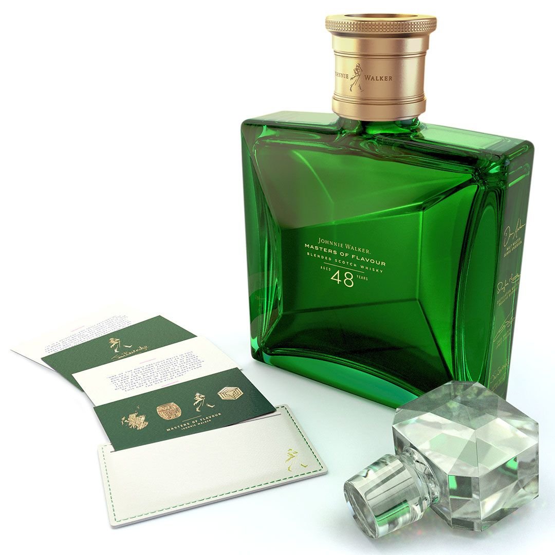 Johnnie Walker Masters of Flavour 48 Year Old is crafted using fleetingly rare whiskies - all aged for at least 48 years - from the four "ghost" distilleries of Port Dundas, Brora, Glen Albyn and Glenury Royal. It is the third and final expression in the Johnnie Walker Masters series, following The John Walker Master's Edition and Johnnie Walker Master's Ruby Reserve. There are only 288 bottles of this exceptionally rare whisky available.Johnnie Walker Masters of Flavour celebrates the art of whisky making, shining a light on how each of the four main steps in the process - malting, distilling, cask maturation and then blending - contribute equally to creating extraordinary flavours - from grain to glass.
