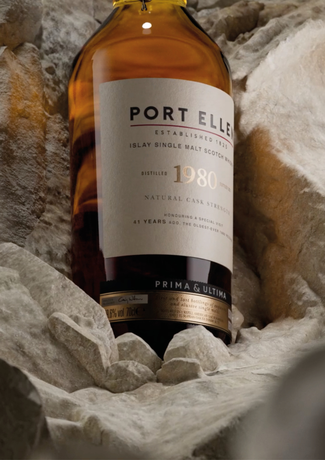 This prized piece of history is the oldest Port Ellen ever to be released, filled in the year the Queen visited the Port Ellen maltings. It comes from the two very last casks of 1980 which lived all their days on Islay.Selected by Dr Craig Wilson, Port Ellen 1980 is one of eight carefully curated whiskies in the third instalment of the Prima & Ultima series. This whisky of majestic quality is rich and smooth with notes of brine and dry seaweed on the nose. This very special Port Ellen is a perfect balance of sweet, salty, and smoky, with a long, lightly peaty finish.