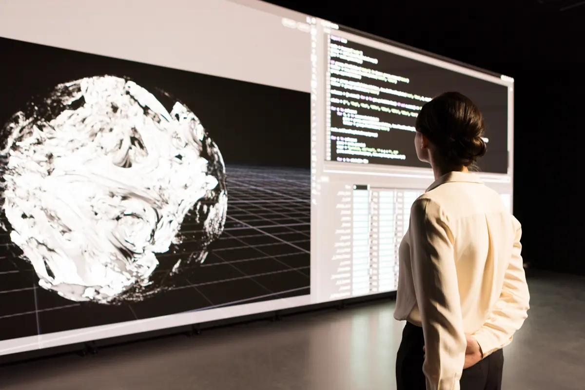 A person looking at a digital globe