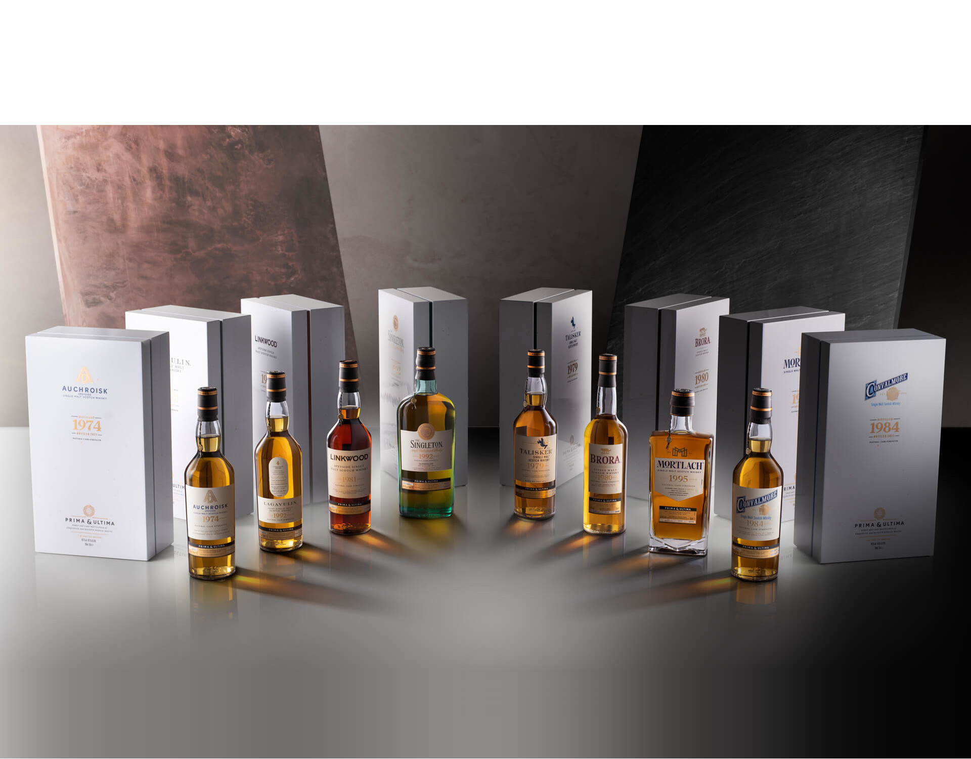 Discover the birthplaces that nurtured the rare and exceptional whiskies within the Prima & Ultima collection, including: Brora, Highlands Port Ellen, Islay Talisker, Isle of Skye Royal Lochnagar, Royal Deeside Johnnie Walker Princes Street, Edinburgh.