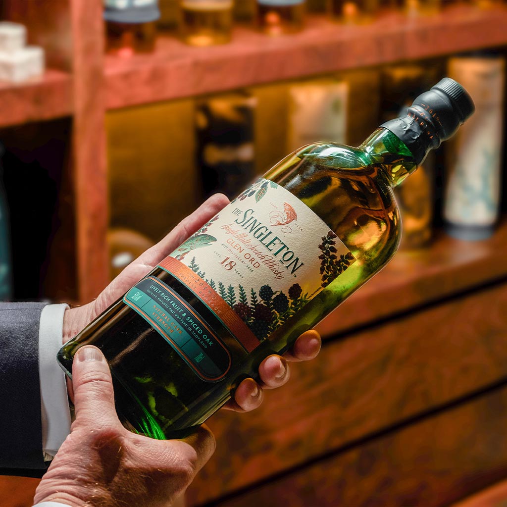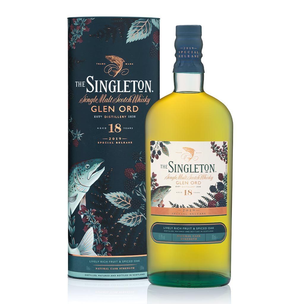 The Singleton is renowned for the smoothness and balance of its whiskies, which match the liveliness and vigour of the leaping salmon in the fast flowing rivers of the Highlands of Scotland. The Singleton Glen Ord is particularly known for its richness and fruitiness, here enriched by a different, more intense maturation cask.This small batch of The Singleton Glen Ord, matured for a full 18 years in freshly charred American oak hogsheads and never before released, combines smooth distillery character with subtle complex aromas and intensely spicy tastes.